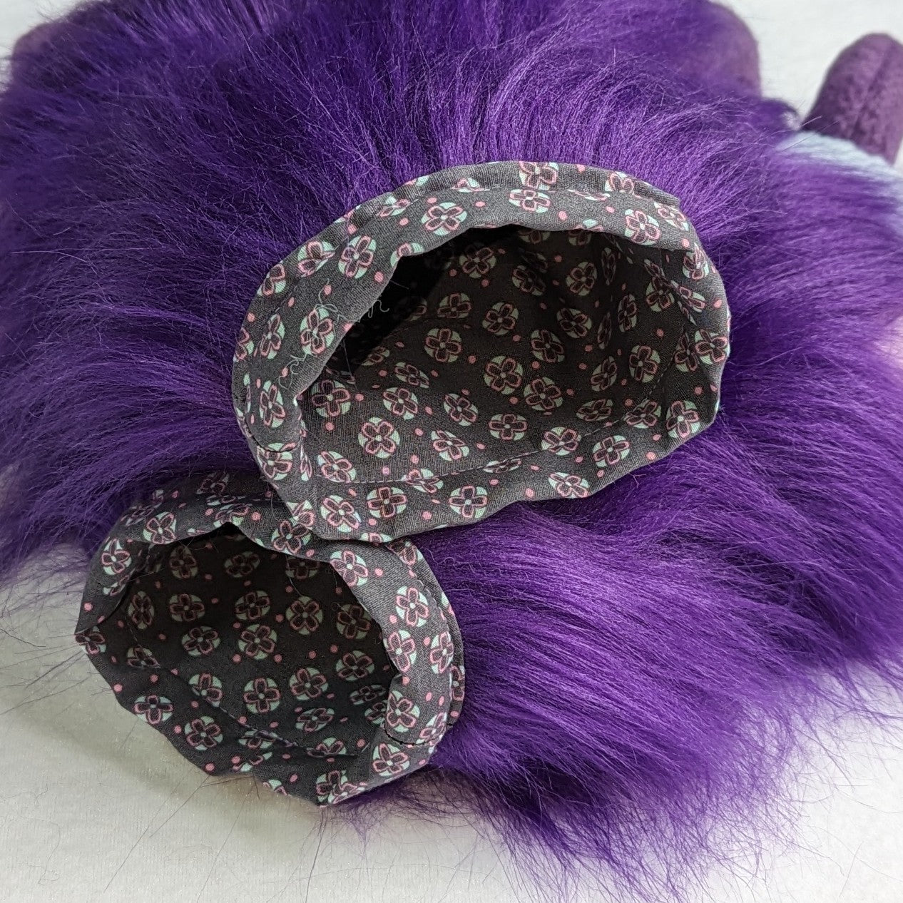 These fursuit handpaws are handcrafted from fleece and high-quality extra long fur, with a cheerful inner lining.